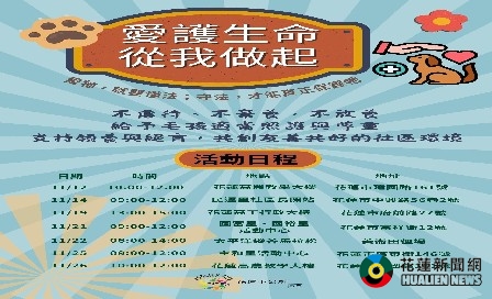 為提升市民對動物保護及正確飼養觀念的認識,花蓮市公所在114年度推動「動物保護宣導活動計畫」,以多元宣導方式深...(繼續閱讀)