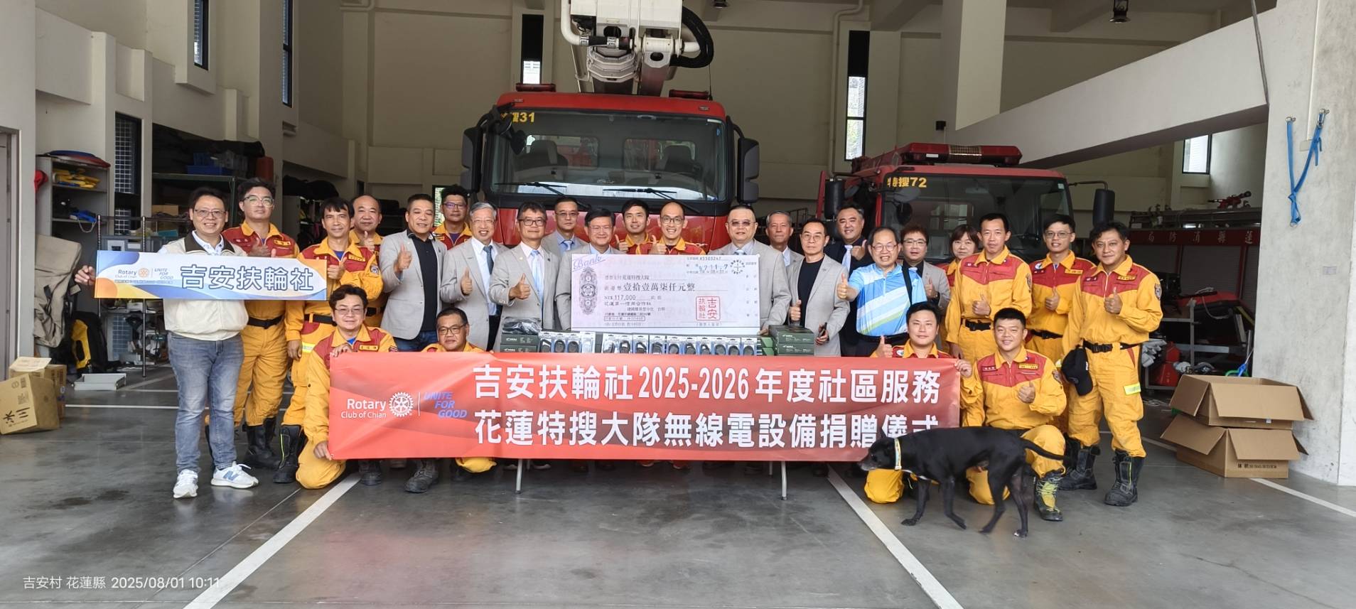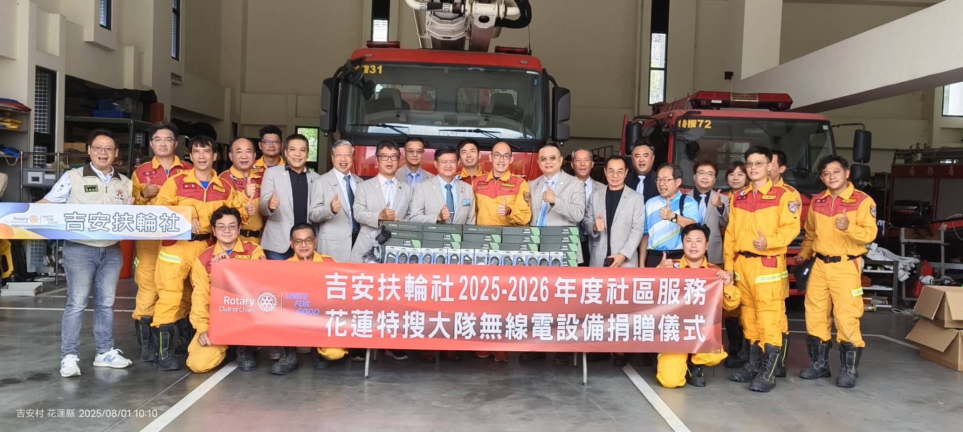 為強化災害應變效能,保障民眾生命安全,吉安扶輪社於今(1)日捐贈30組高規格無線電設備予花蓮縣消防局義勇消防總隊特種搜救大隊。這批設備將大幅提升義消人員在山域搜救與重大災害現場的通訊品質,實現更即時、安全的任務調度。