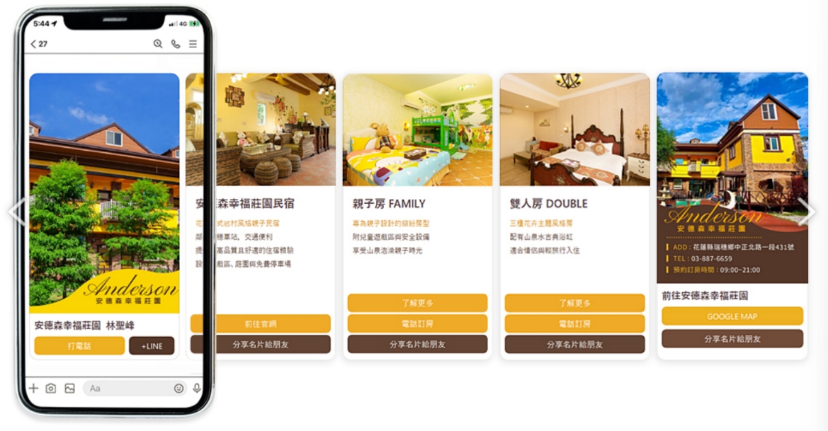 目前已有多家花蓮在地商家導入數位名片應用:京辰精品、川宏廚具、Líng 綾・靈感生活、PeiPei紋繡整體造型美學館、采渝美學館/TY頭皮養護館、有巢氏房屋謙誠富國加盟店、村上村屋蔬果輕火鍋、生命靈數‧療癒空間、美崙第一刀削麵、花蓮波波投幣式自助洗衣店、田園記咖啡館,這些店家應用LINE社群、線上預約、網站導流功能讓客戶更方便了解服務內容、建立互動,串聯商務交流為品牌找到更多合作商機!