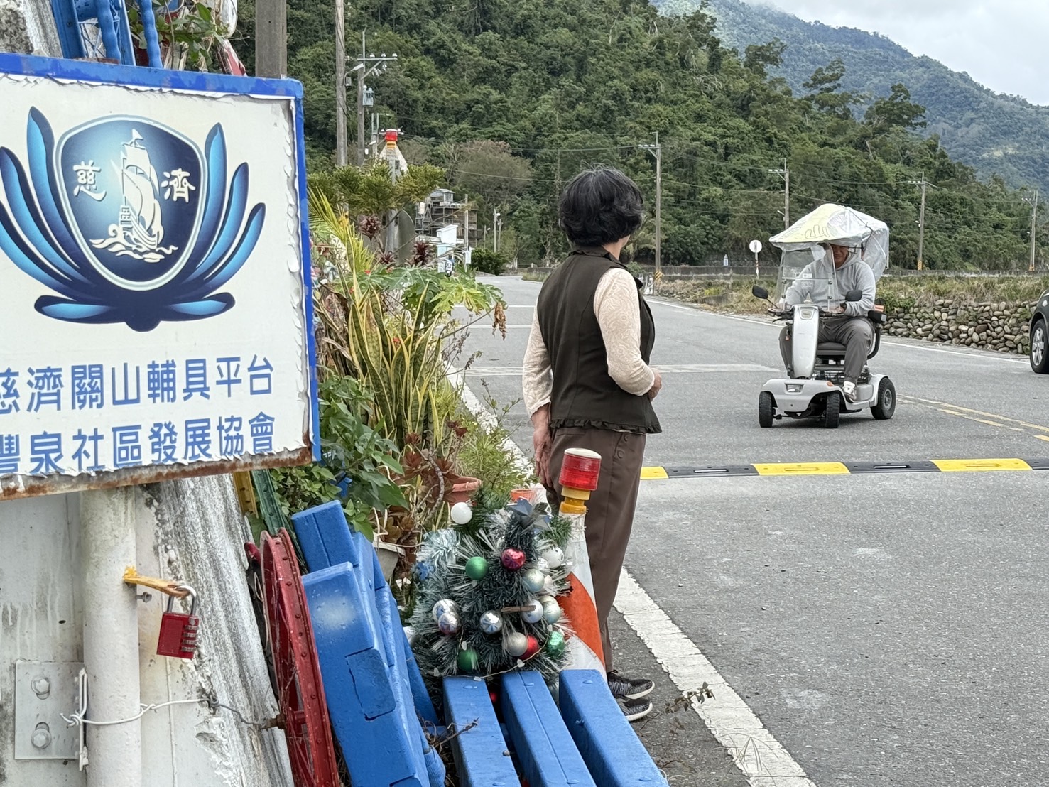 縣議員陳宏宗聯繫關山鎮民代表會副主席李偉鈺前往現地進行瞭解,經評估轉彎處雖然已經設置有道路反射鏡,但觀察路過車輛在經過輔具平台和長照站入口處時還是常會顯得有些反應不及。評估後建議由關山鎮公所設置跳動路面(又稱爲減速丘、減速墊),具備提醒及警示駕駛減速的效果。