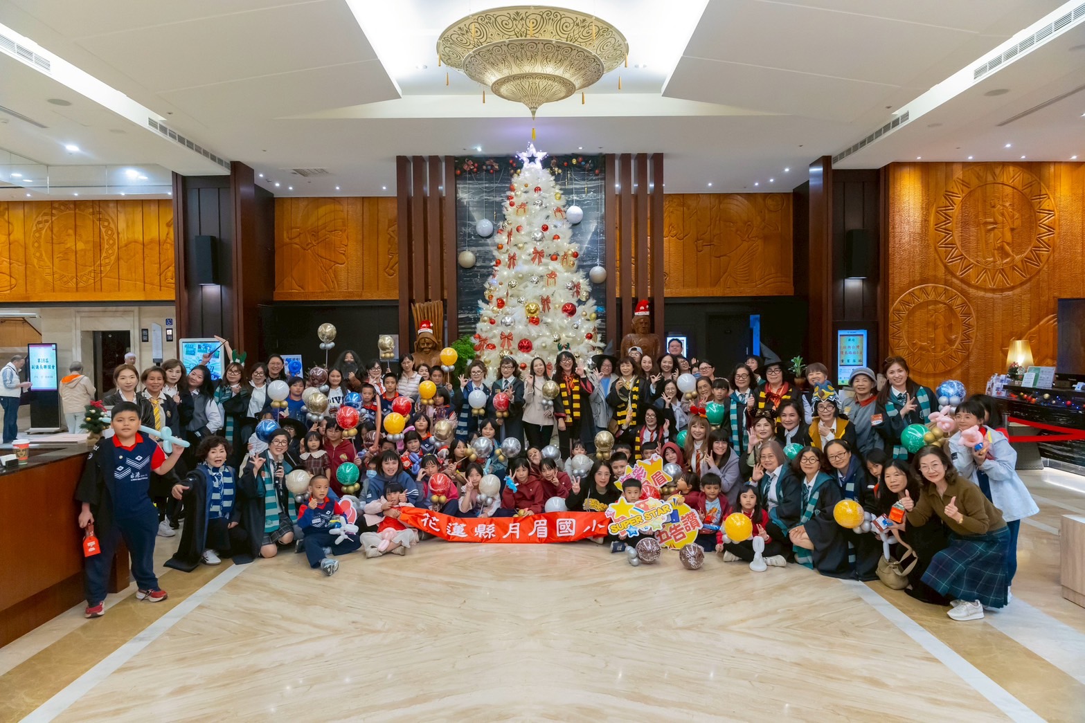 餐會尾聲由花蓮知名魔術師「雷恩叔叔」壓軸登場,帶來精采的互動魔術秀。演出節奏明快、驚喜連連,他更邀請多位小朋友輪番上台參與,讓孩子從「觀眾」變成「主角」,在掌聲與驚呼中建立自信,也把現場氣氛一次拉到最高點。雷恩叔叔巧妙運用近距離魔術與即興互動,讓每個座位都像第一排,台下家長與獅友看得目不轉睛,笑聲與歡呼此起彼落。更令人驚喜的是,他加碼帶來全台少見的腹語橋段,透過生動的角色聲線與幽默對話,讓「會說話的夥伴」彷彿真的活了起來,孩子們聽得入迷、笑到停不下來,也成為當天最令人印象深刻的橋段之一。演出結束後,孩子們抱著造型氣球、滿臉笑容,為年末聚會畫下溫暖句點。