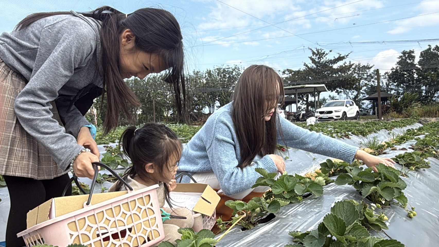 來自台東市區的潘琬緁帶著兩位小朋友來採草莓,她說,關山有種草莓不用再跑外縣市也能吃到好吃美味的草莓,帶著小朋友尋找成熟的草莓採摘。林明河指出,希望老天不要再降雨造成爛果,而理想的情形開放採果能夠持續到農曆春節,歡迎民眾除了來關山遊玩也能到環鎮自行車道8公里「青青草莓園」享受採果的樂趣。