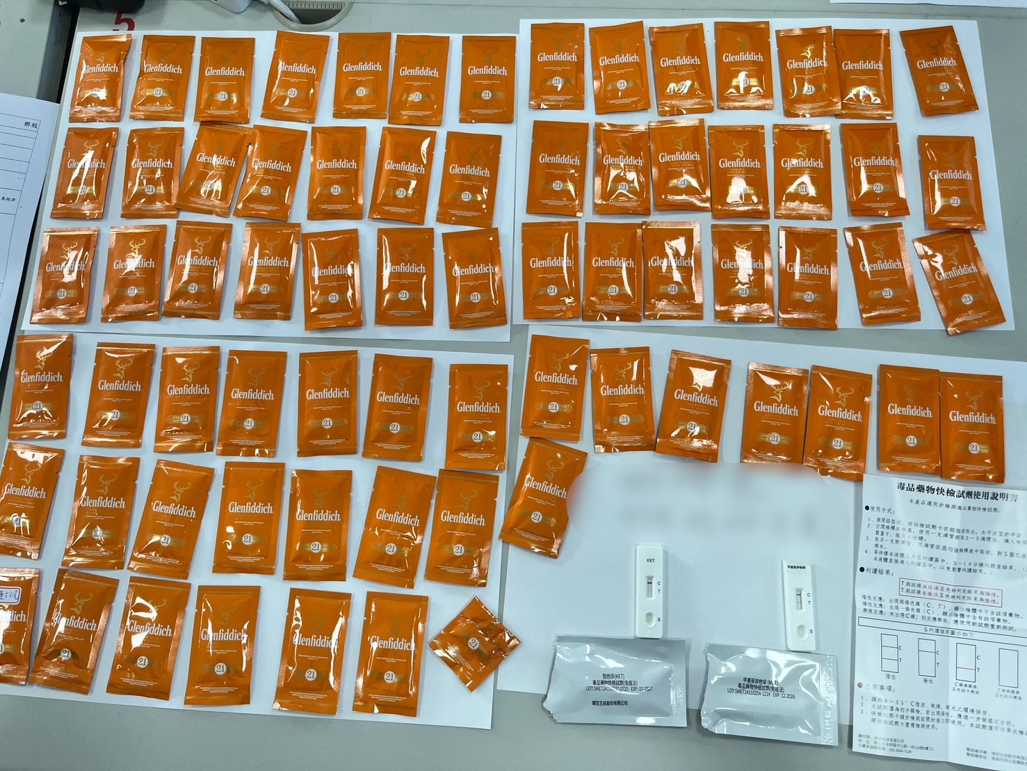 警方共查獲二、三級混合型毒品咖啡包一批,以及二級毒品依托咪酯1瓶。此外,亦搜出電子煙桿、吸食器等證物,警方隨即將涉案蔡姓男子(25歲)依違反《毒品危害防制條例》現行犯逮捕偵辦,並擴大追查上游來源。