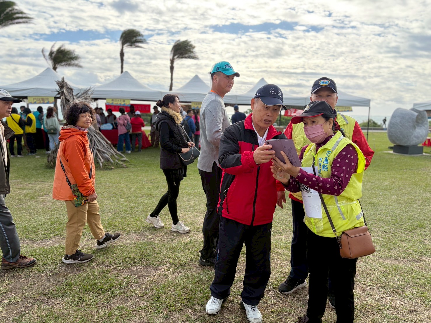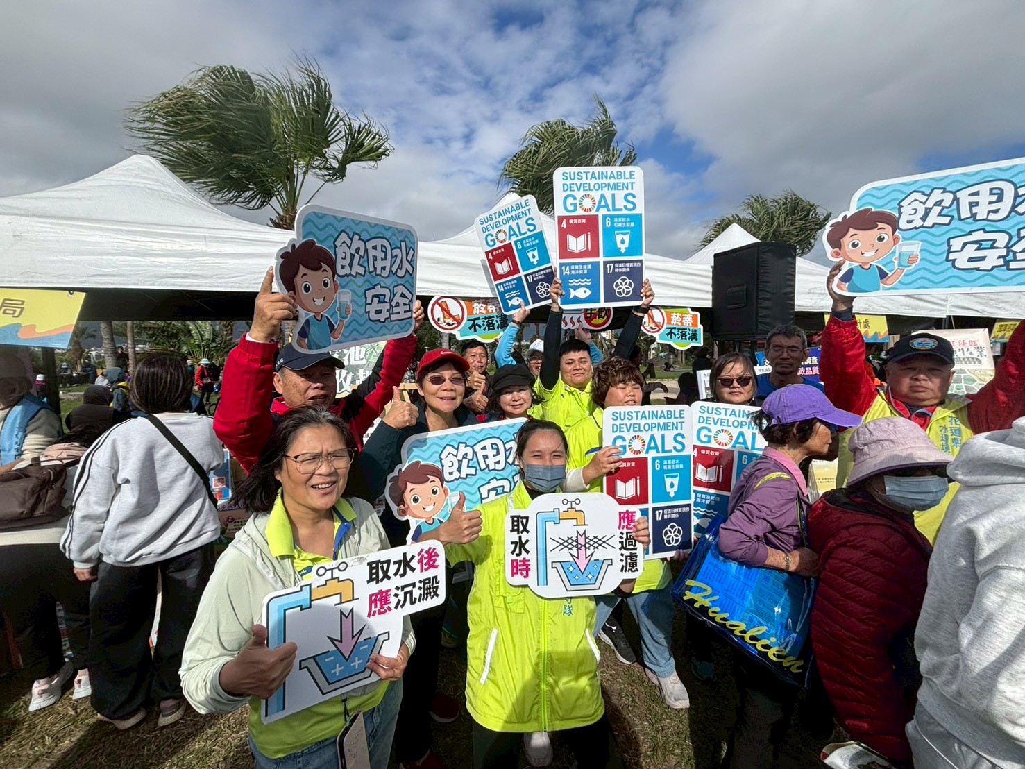 配合花蓮縣政府元旦太平洋公園健走升旗活動,花蓮港水環境巡守隊以「河海淨源」為主題設攤宣導,透過圖卡展示與互動解說,搭配播放榮獲111年優良級肯定之巡守隊 YouTube 影片,向民眾介紹巡守隊的行動成果與志工任務,具體呈現治理成效,提升宣導效率與理解度。