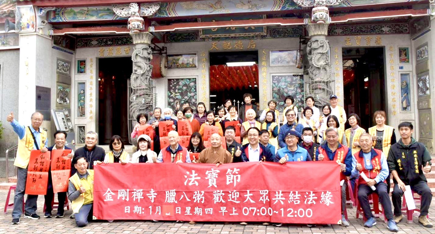 佛光山臺東「金剛寺」上午在關山鎮的「天后宮」廟埕舉行臘八粥的發送活動,一清早志工們就忙得不可開交,最後總計完成6000碗左右。關山鎮長彭成豐特別感謝「金剛寺」近年持續在關山弘揚佛法、推廣藝文展演,也持續三年進行臘八粥寒冬送暖活動。