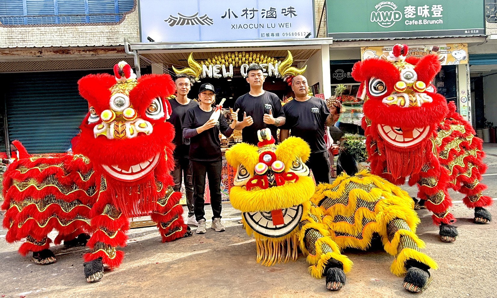 親朋好友和街坊鄰居歡喜一起來祝賀「小村滷味」新店開張,敲擊時震撼力十足的戰鼓成功拉開序幕,而隨即登場的醒獅表演更是靈活靈現連外國人都忍不住駐足觀賞。在地村長劉亦松現場指揮交通,讓來往人車順暢通行。