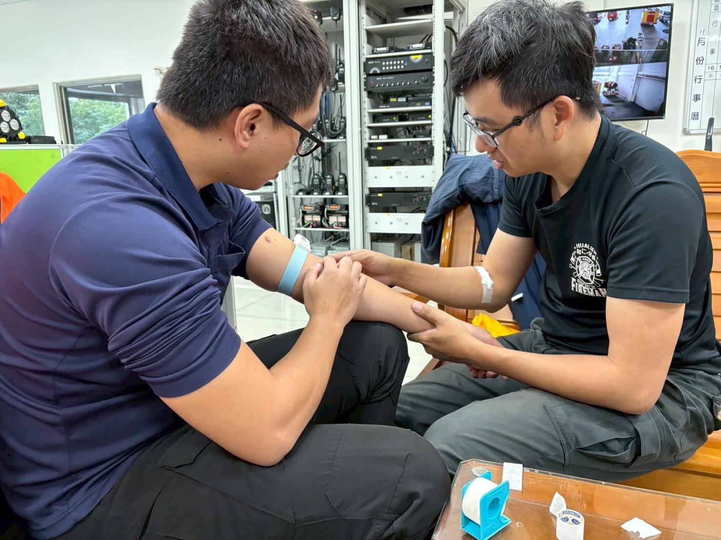 和仁消防隊為精進到院前緊急救護品質與第一線救護人員臨場處置能力,本月規劃「靜脈注射(IV)技術」為重點訓練項目,針對救護勤務常見且具高度風險之低血糖、休克及重大創傷等情境,強化救護人員建立靜脈通路之熟練度與安全性,期能在黃金時間內完成關鍵處置,尤其本分隊送醫時間平均為半小時此訓練能提升病患存活機會減少患者後遺症並強化後續送醫銜接。