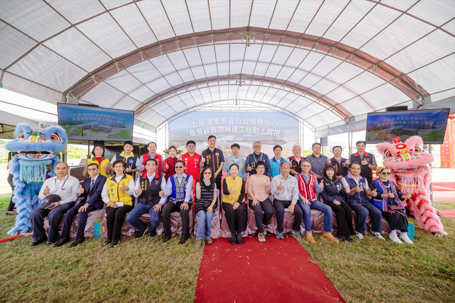 花蓮縣政府持續推動觀光升級,備受矚目的「七星潭風景區旅遊服務中心及景觀廊帶興建工程」今(2)日舉行盛大開工動土典禮。典禮由縣長徐榛蔚親自主持,並邀集多位縣議員、在地村長及各界貴賓共同見證,祈求工程圓滿順利。現場氣氛隆重熱絡,象徵花蓮觀光指標性建設正式啟航。工程預計於116年8月前完工,未來將成為迎接國內外旅客走進七星潭的重要門戶。