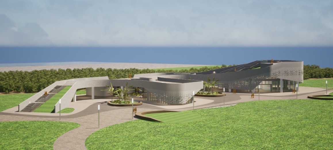 觀光處長余明勲指出,本案由黃毓清建築師操刀設計,建築概念以「流動的曲線」呼應七星潭海岸線的自然律動。整體造型靈感源自「鯨魚母子」,象徵海洋孕育生命的包容意象,也展現「鯨躍太平洋」的蓬勃能量。主體由一大一小兩座弧形量體構成,兼顧不同功能分區需求,立面設計柔和流暢,營造富有動感與親和力的視覺印象。屋頂更規劃為可步行的景觀坡道,完工後旅客可登高遠眺,將太平洋的壯闊與中央山脈的蒼翠盡收眼底,打造獨一無二的觀景體驗。