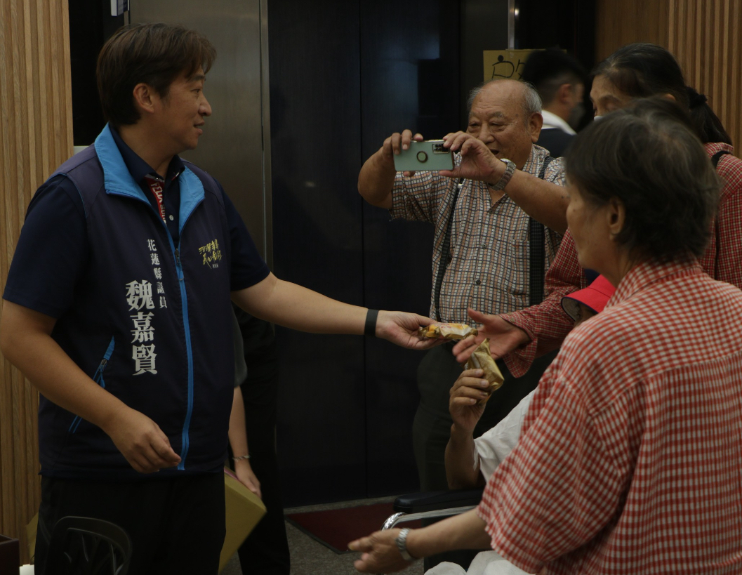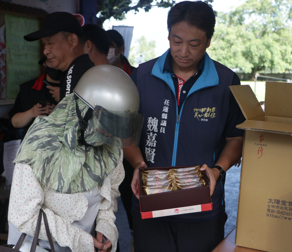 魏嘉賢指出,這批物資要特別感謝雷董事長的善舉,以及北屯區三和里長許勝雄與臺中市政府運動局專員吳宗學的跨縣市協力,才能讓剛出爐的太陽餅迅速送達花蓮。