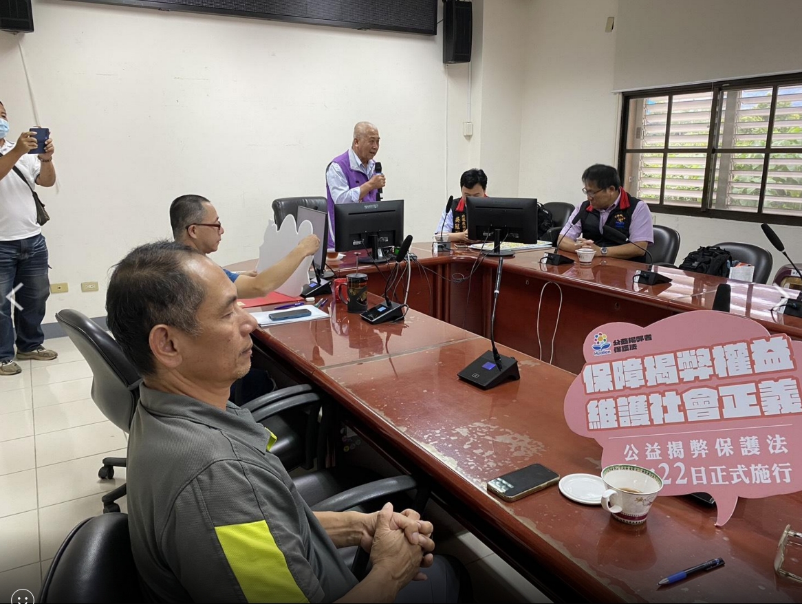 為強化各鄉鎮市公所對《公益揭弊者保護法》的認識,花蓮縣政府政風處於今(29)日前往瑞穗鄉公所舉辦「公益揭弊者保護法說明會」,公所12名主管全員到齊,瑞穗鄉長吳萬德親自出席致詞,對縣府政風處積極巡迴各鄉鎮公所推動法令宣導表達肯定,並表示此次說明會對公所同仁了解揭弊者保護制度及依法行政觀念幫助甚大。