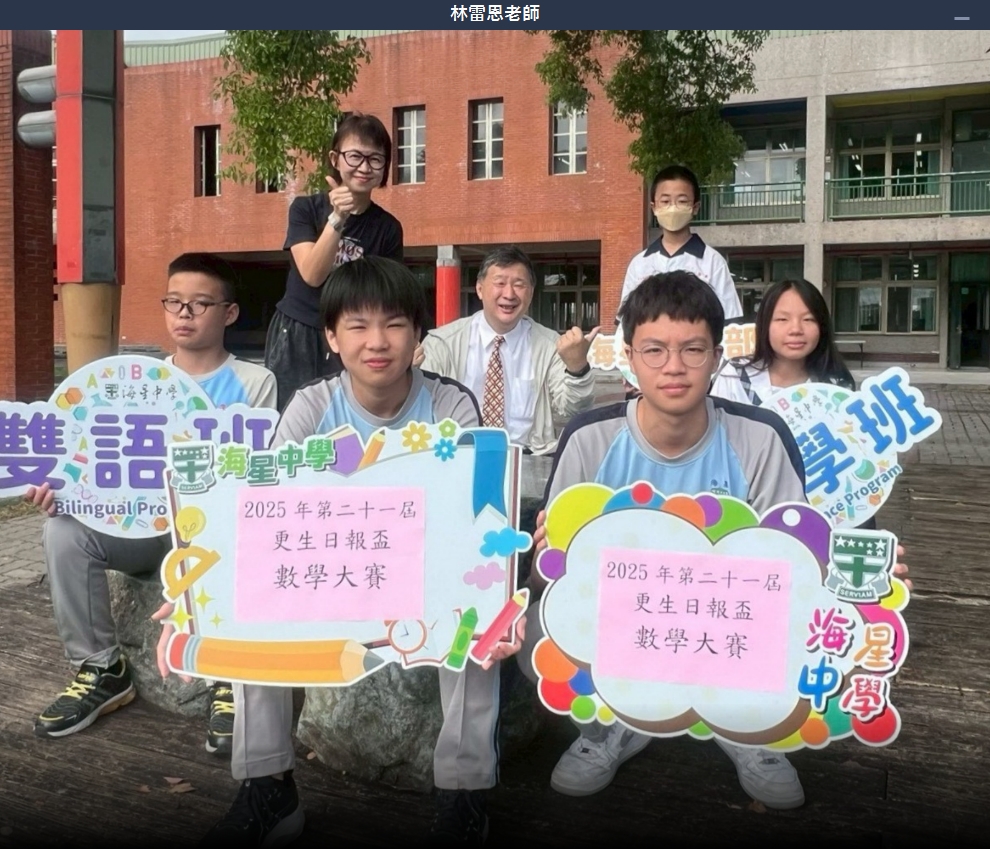 國中部獲得金牌的邱厚臻同學就讀海星國小時數學表現即十分突出,他對於數理十分有天賦且具高度興趣,平時廣泛的閱讀書籍,學習上遇到困難時,會主動詢問師長尋求解答,學習態度十分積極,未來將再接再厲,挑戰更佳成績。