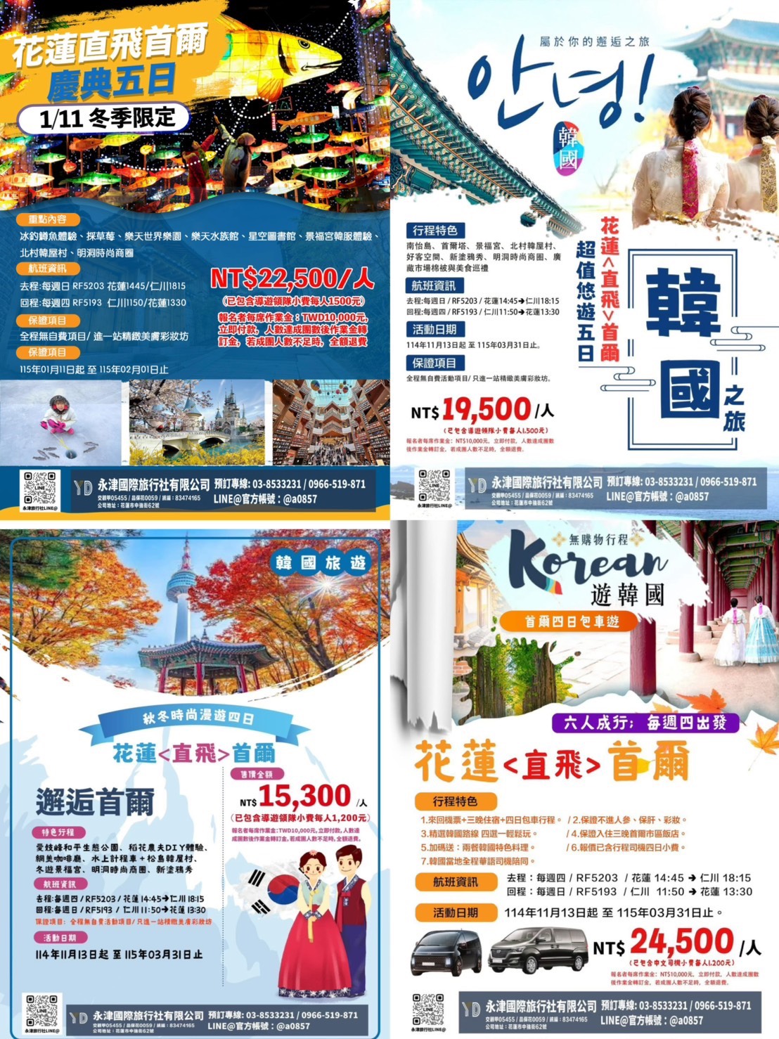 花蓮直飛韓國仁川首航啟動 永津旅行社推超值特色行程