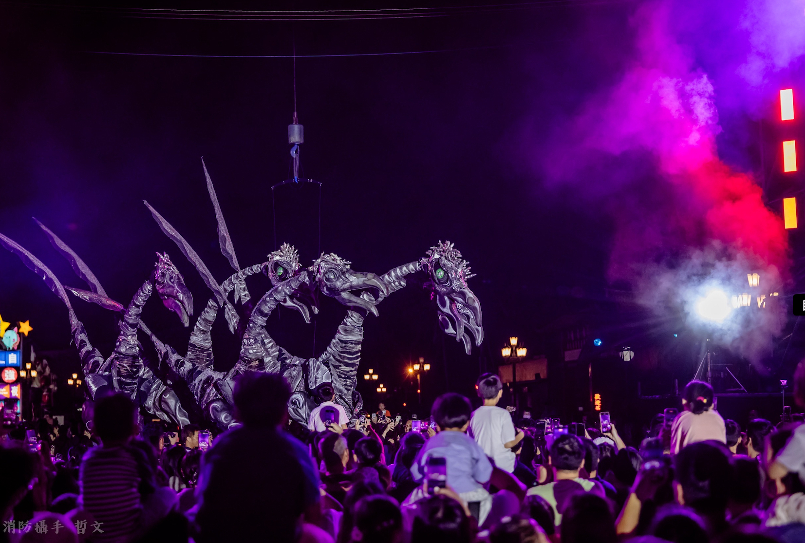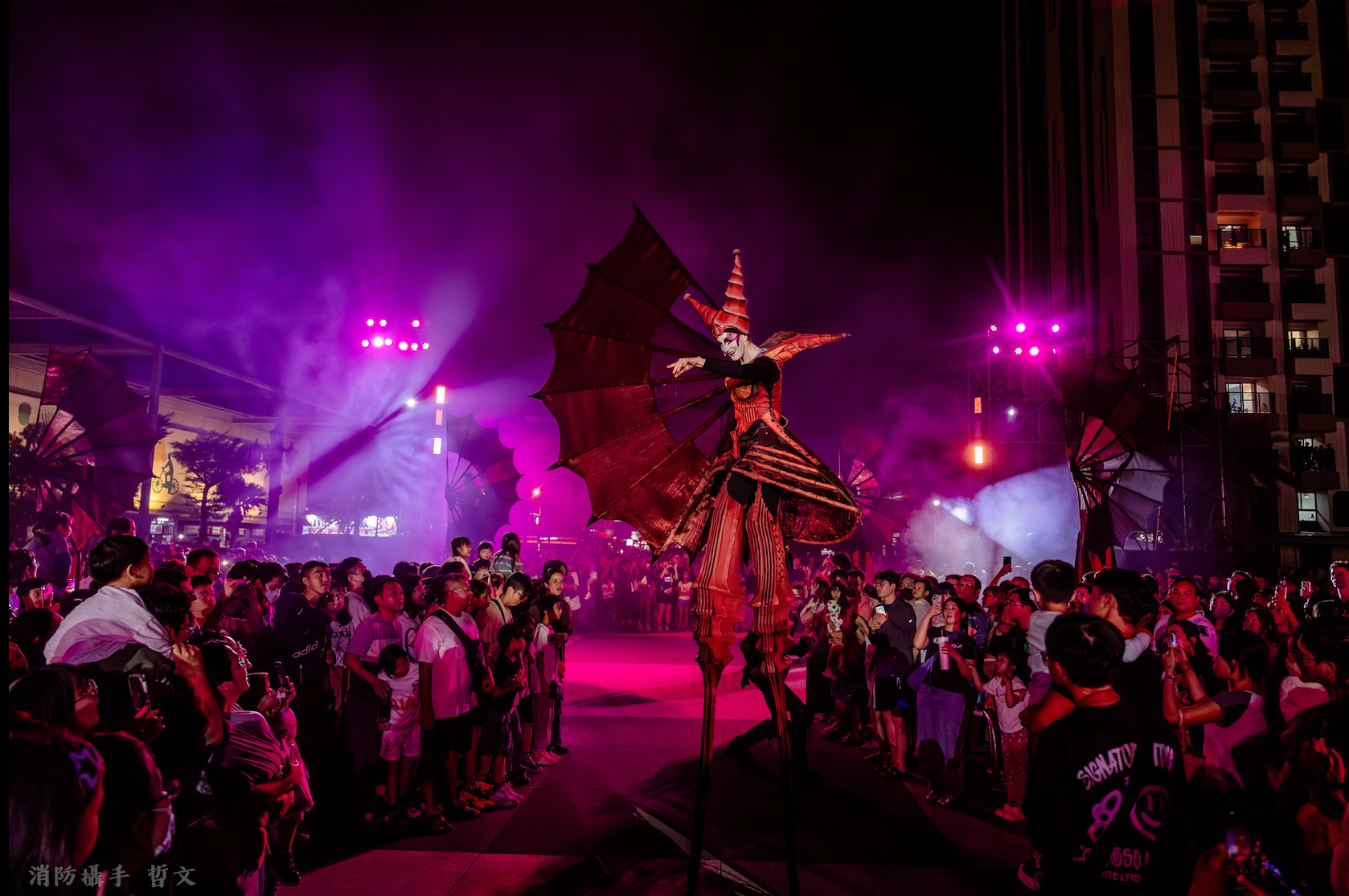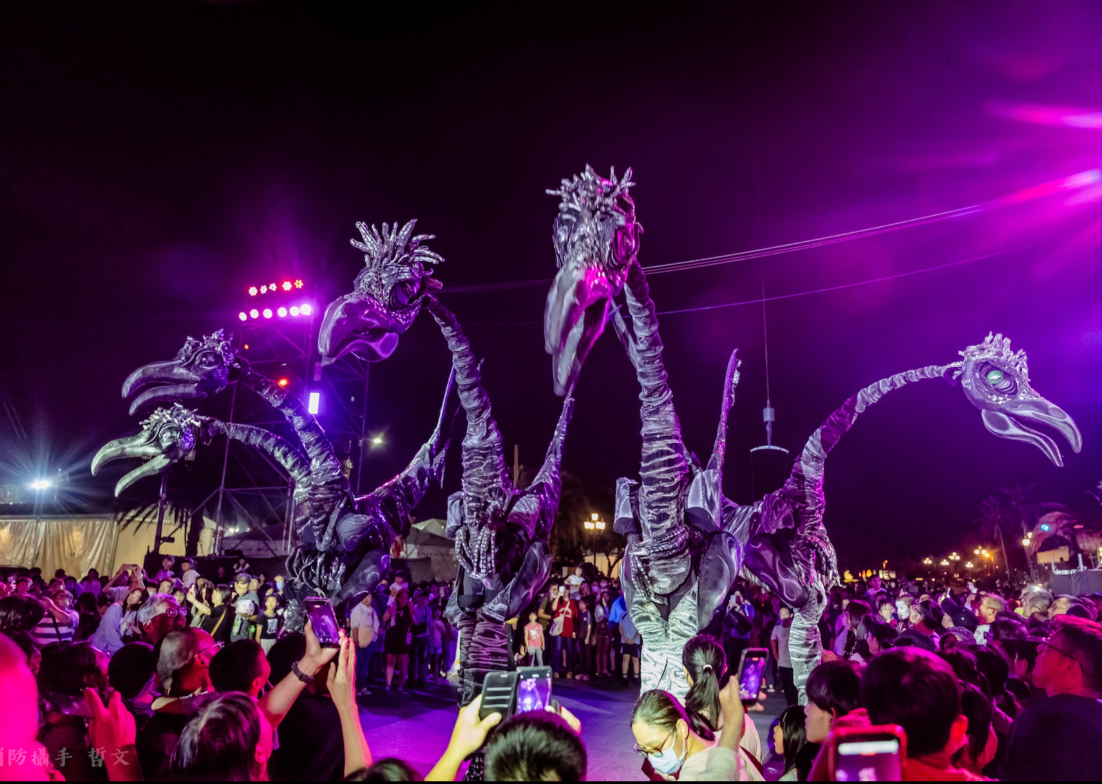 由花蓮縣政府主辦及文化局承辦的「2025花蓮國際藝術節」特別邀請享譽全球的荷蘭「近距離劇院 Close-Act Theatre」11月8至9日一連兩晚7時,在花蓮日出大道重慶市場旁帶來震撼全球的戶外沉浸式行動劇鉅作《恐龍入侵》,縣長徐榛蔚今(8)日晚間在文化局代理局長曾之妤及立委傅崐萁陪同下與鄉親們一起欣賞國際級的震撼演出。