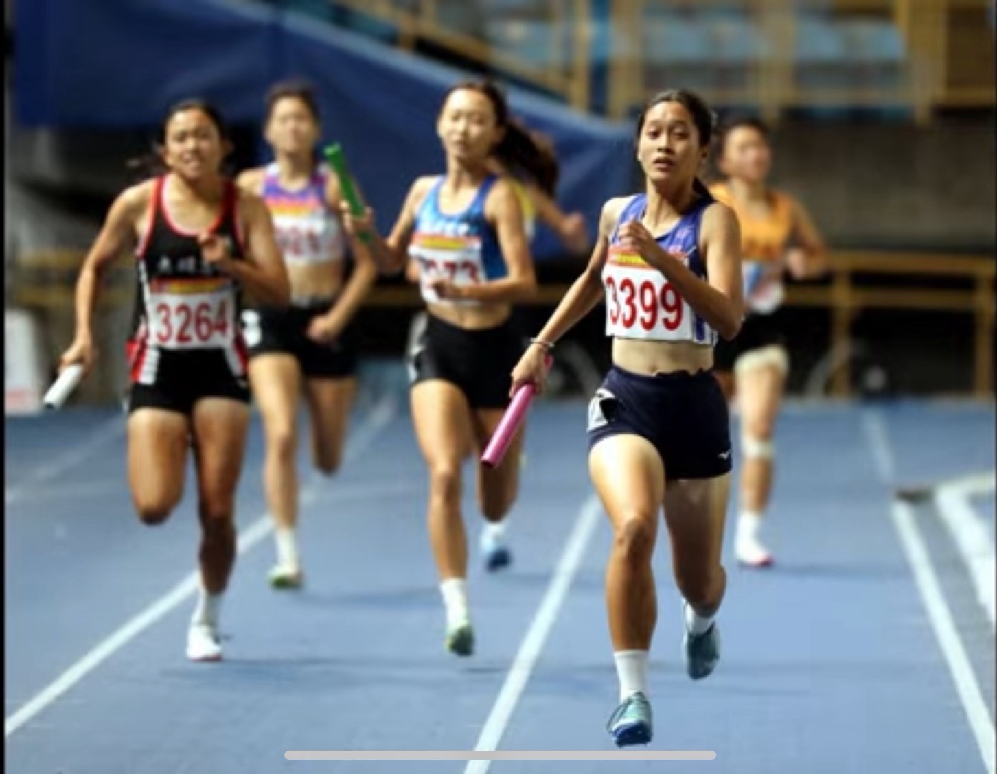 本屆混合組4×400公尺接力的計時決賽中,海星四位選手展現非凡的團隊默契與驚人穩定度。普二愛伍毅軒、普一忠蘇若妍、普二愛蘇祥奕,以及普二愛謝冠瑜四位同學攜手合作,在每一次交棒間皆保持流暢節奏,最終成功衝線,將紀錄再度改寫,也讓全場響起熱烈掌聲。