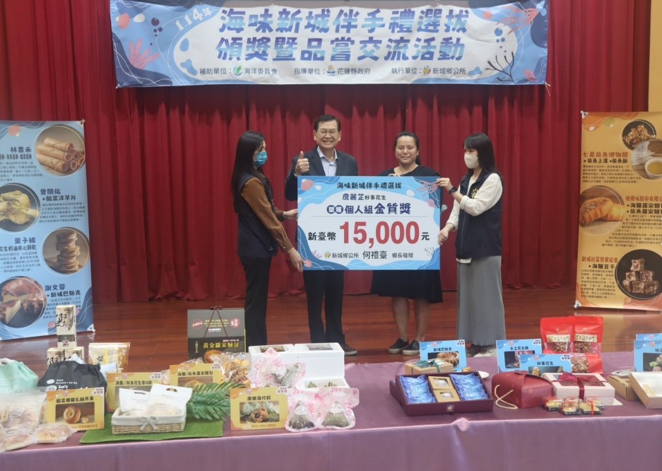 新城鄉公所於11月16日(今)舉辦「114年海味新城伴手禮選拔頒獎典禮暨品嚐交流活動」,活動由海洋委員會補助,花蓮縣政府指導辦理,目的在推廣新城鄉的農漁畜產品,並鼓勵鄉民透過創新研發,開發兼具特色與市場潛力的伴手禮。以「海味新城」為主題,活動邀請在地社區團體與個人參賽,並將新城的農、漁、畜產品與深層海鹽元素結合,展現出新城鄉的獨特風味與創意。活動共分為團體組與個人組兩大類,經過初選與決選兩階段評比,最終團體組6組、個人組7組入選得獎。