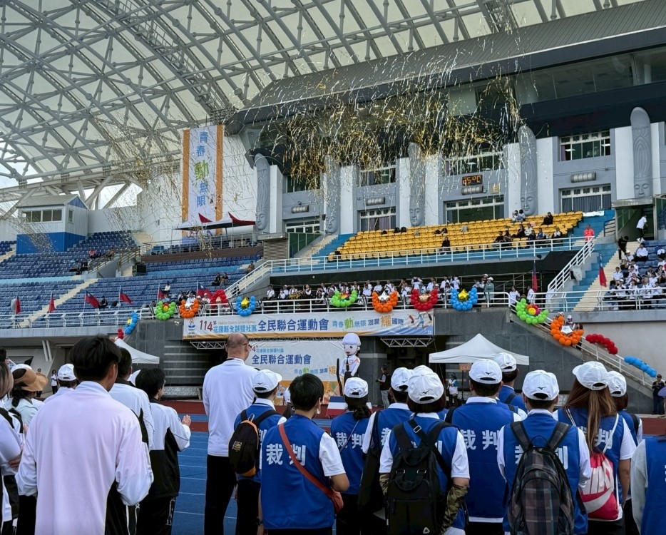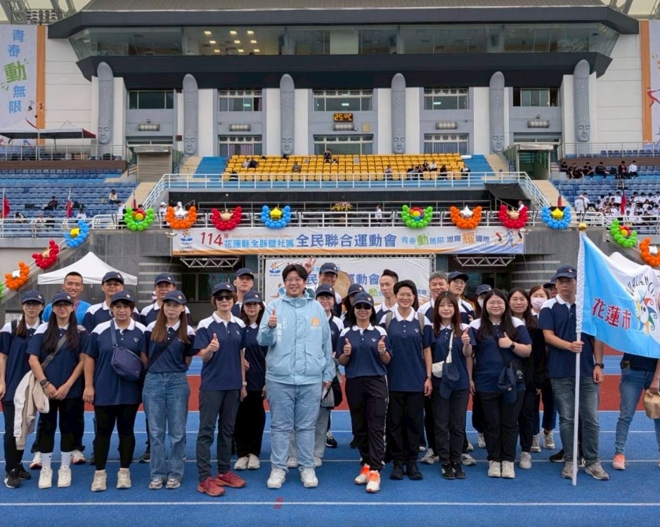 114年花蓮縣全縣暨社區全民聯合運動會今(15)日上午在小巨蛋運動場盛大舉行開幕典禮,由花蓮縣長徐榛蔚主持。花蓮市代表隊由主任秘書翁美華率隊出席,市長魏嘉彥也在台上向進場的花蓮市選手揮手致意,並給予熱情鼓勵。
