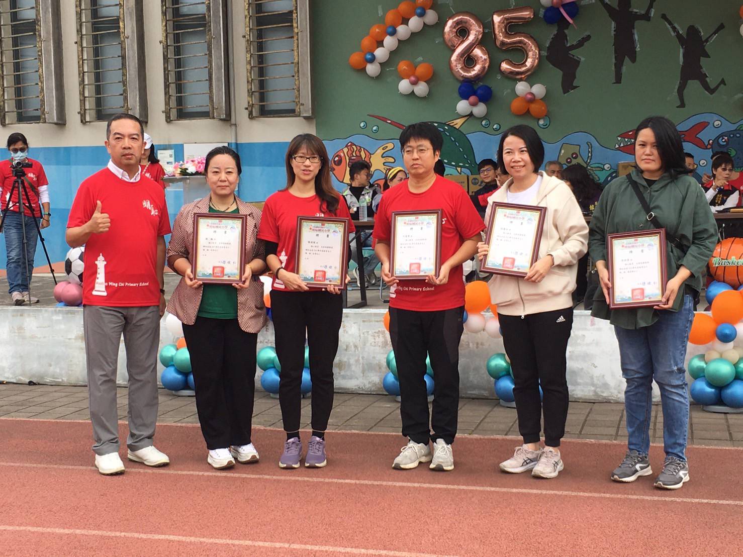 明恥85週年校慶里校運動會 「熱力綻放」大會舞熱情洋溢 家長學生貴賓熱舞嗨翻天 天使快樂出發萌動可愛 神射手團賽奮力投球親子齊心 百發百中努力得獎不懈怠
