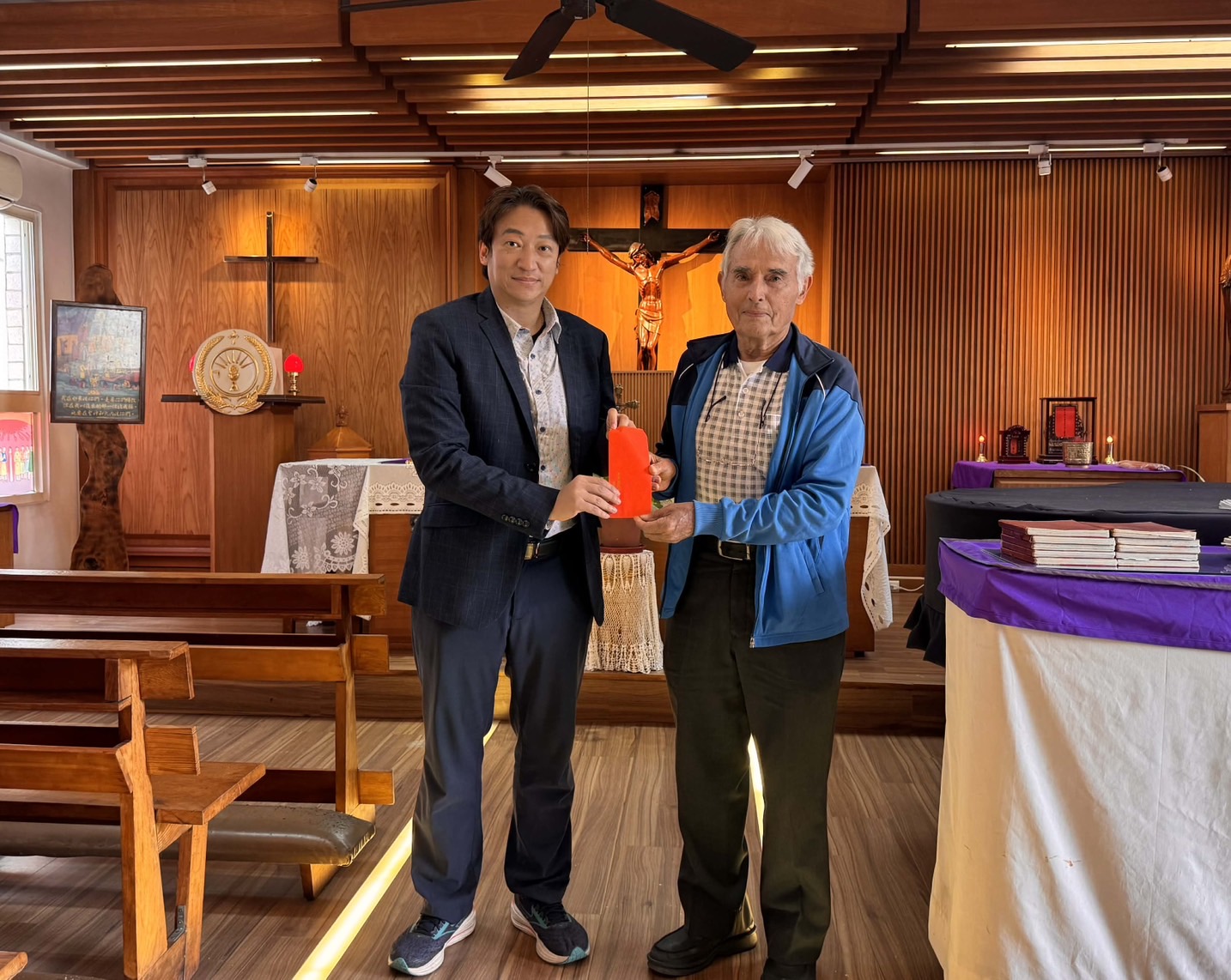 12月10日上午,玉里天主堂在冬日晨光中迎來一場充滿情感與文化深度的捐贈活動。財團法人花蓮縣 愛花蓮愛心文化藝術基金會 由董事長 魏嘉賢代表基金會 捐贈 10萬元,支持劉一峰神父的新書 《走徑東海岸—與法國神父相遇》 出版。