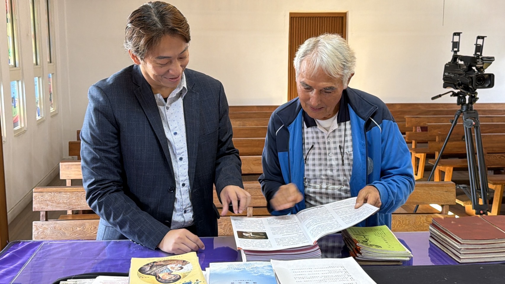 五年前(2020 年),當時仍擔任花蓮市長的魏嘉賢,曾親赴玉里天主堂拜訪劉一峰神父,並代表市公所 認購280冊《台灣東海岸的法國牧者》,分送學校與圖書館。