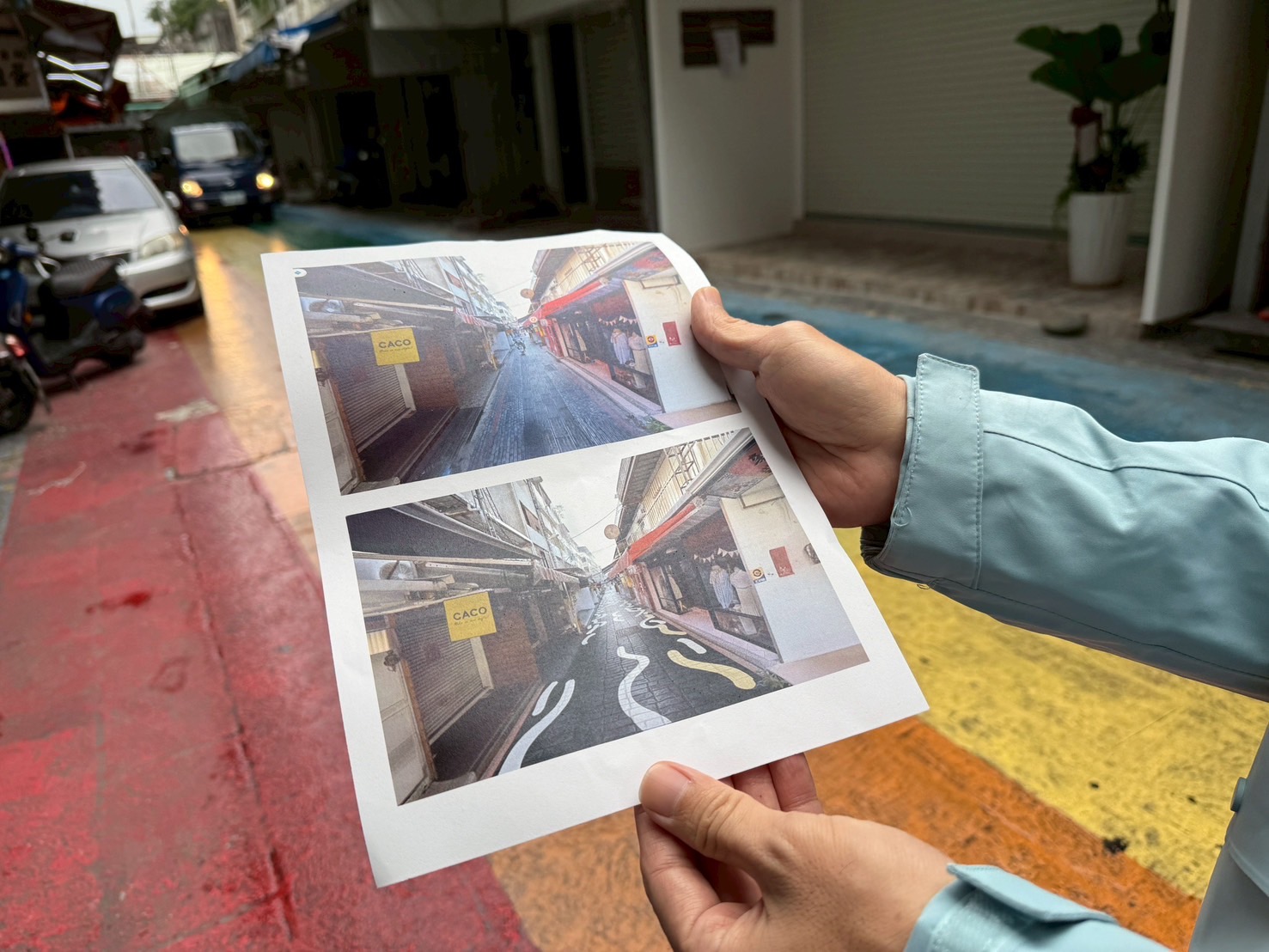 花蓮市百年老街商圈發展協會總幹事黃智章也指出,自從十多年前鋪設地磚後,機車打滑事件不斷,店家與居民都相當憂心。他表示,先前參與客庄百年老街街區妝點規劃說明會後,對整體發展相當期待,若能優先改善行車安全,相信將獲得更多店家支持後續整體工程推動。