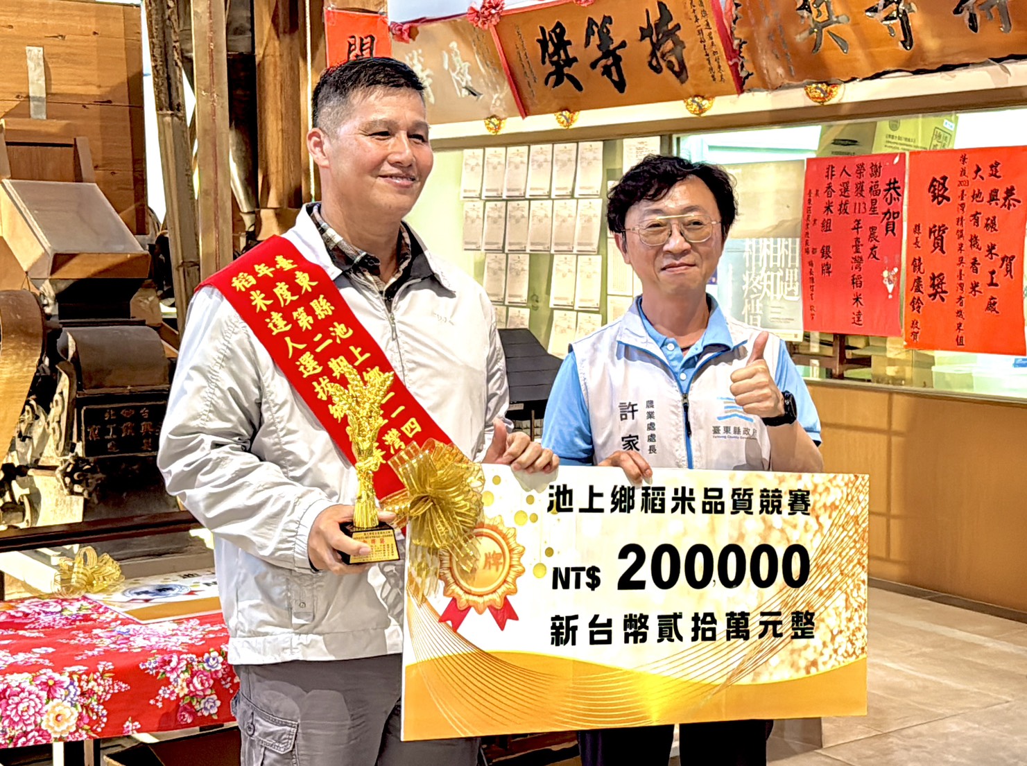 池上鄉為全國唯一在二期稻作還舉辦稻米品質競賽,雖然收割的收穫呈現「歉收」的情形但品質仍影響有限。比賽分為香米組和非香米組分別有十人進入決賽,其中非香米組金牌農民余「建宏」與鄉長林「建宏」同名,形成建宏恭喜建宏的有趣場面。香米組高盛雄則是參賽12年終於拿下金牌,這份榮耀直呼都等好久了。