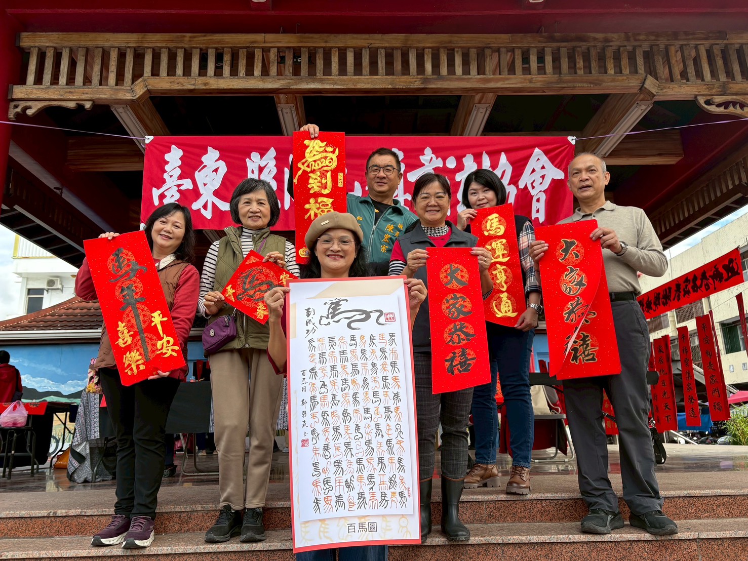 關山鎮周休假日舉辦免費贈春聯 四位書法家以書法結合畫作完美呈現