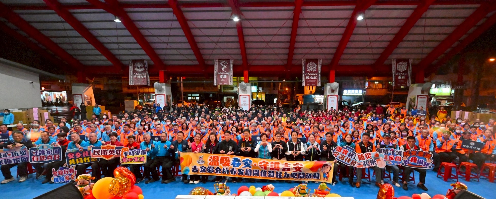 春節期間返鄉人潮與觀光遊客增加,治安維護、交通疏導及防火宣導壓力同步攀升。吉安鄉公所配合縣警察局推動春安工作,需出勤巡守隊、義警、民防、義消、特搜、防宣、鳳凰救護及協勤志工等(含山域與水域勤務)編制903名人力。活動現場出席達四百名協勤民力整隊高呼守護春安到位,各分隊精神抖擻,展現守護家鄉的決心。