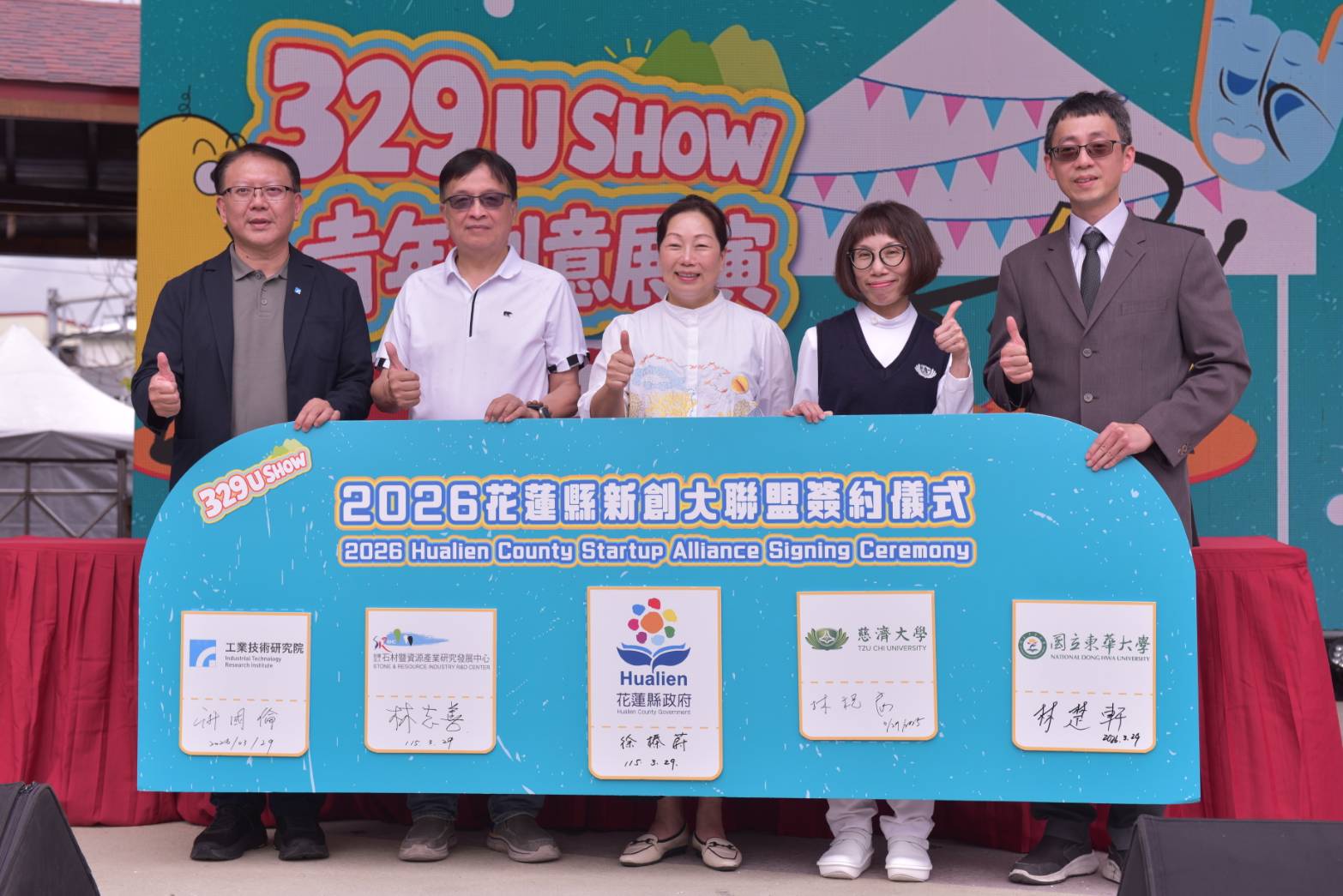 活動期間亦辦理「新創大聯盟簽署儀式」,由工業技術研究院、石材暨資源產業研究發展中心、國立東華大學及慈濟大學共同參與,持續深化產官學研合作機制,強化創業支持體系;同時辦理18位創業導師授證,集結財經法律、企業管理、藝術文化及社區營造等不同領域專業人士,提供青年一對一諮詢與陪伴