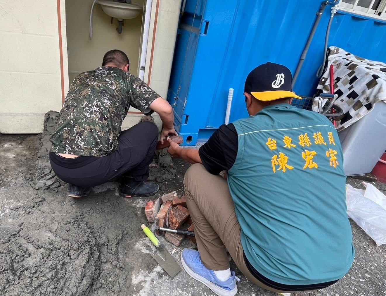 池上80歲阿公浴廁呈高低差 議員偕同志工協助設坡道降低危險